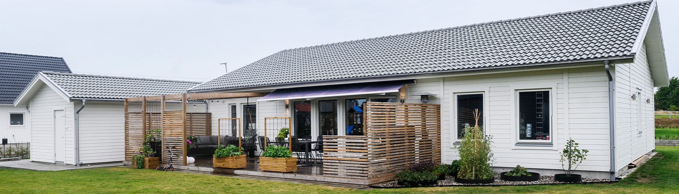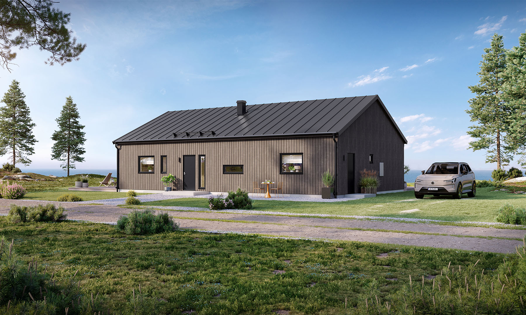 Priset avser standardutförande med vår höga grundstandard på totalentreprenad och inkluderar grundläggning med platta på mark och vattenburen golvvärme samt markarbeten i standardomfattning. Vi förbehåller oss rätten för lokala prisavvikelser med hänsyn till transport- och tillgänglighetssvårigheter, så som vid bl a bro-, tunnel- eller färjeanslutna ögrupper.