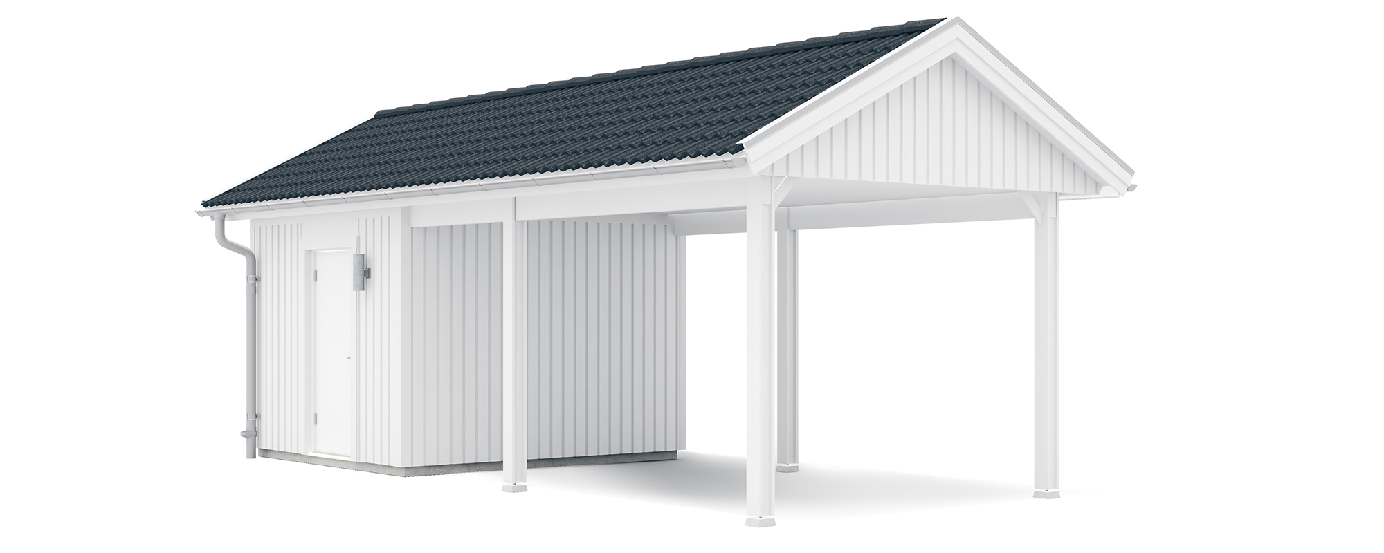 Start /Våra garage /CP-29 1 / 1 CP-29Byggnadsarea28.9 m²Byggnadshöjd3 mNockhöjd3.9 mCP-29 är en fristående carport med tillhörande förråd med plats för en bil.Planritningar i standardutförande Laddar…