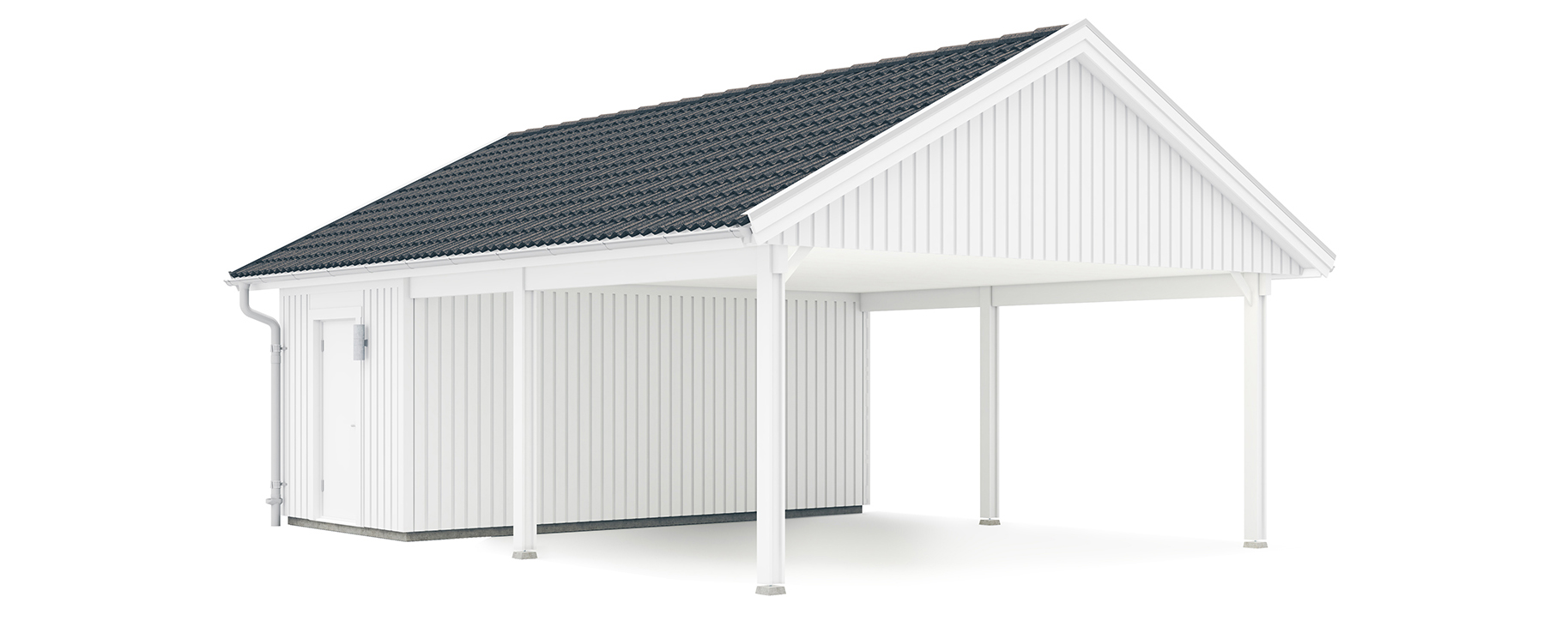 I vår carport CP-52 får det plats två bilar utan problem. Dessutom ingår det ett förråd på 14,2 kvm.