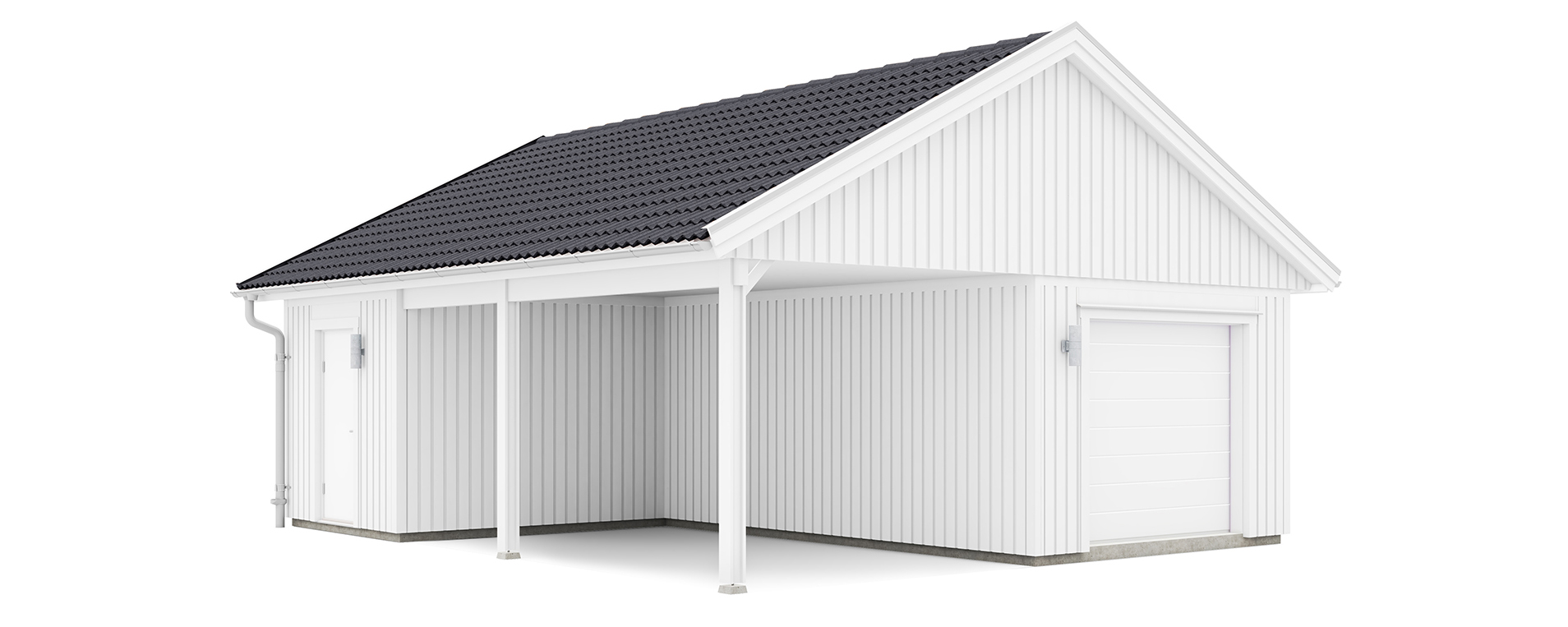 CPG-60 är ett enbilsgarage som även är utrustat med carport och stort förråd. Du kan välja att ha öppet mellan garaget och förrådet eller gränsa av med en vägg.