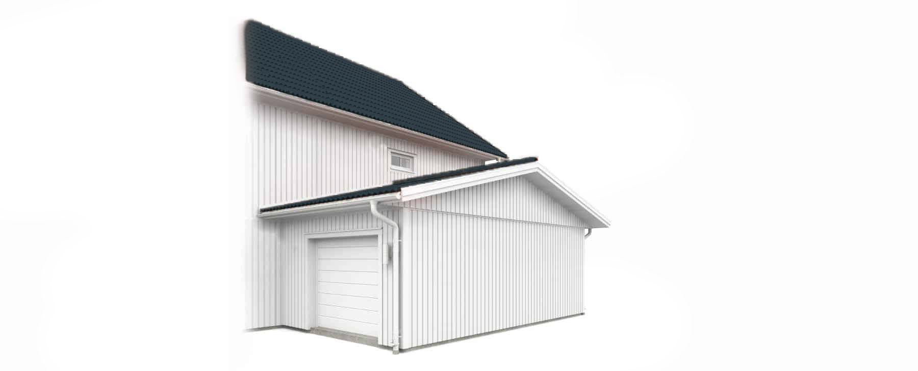Till 2-planshuset LB Optimal 169 kan du välja till ett kopplat garage med ingång direkt till tvättstugan.