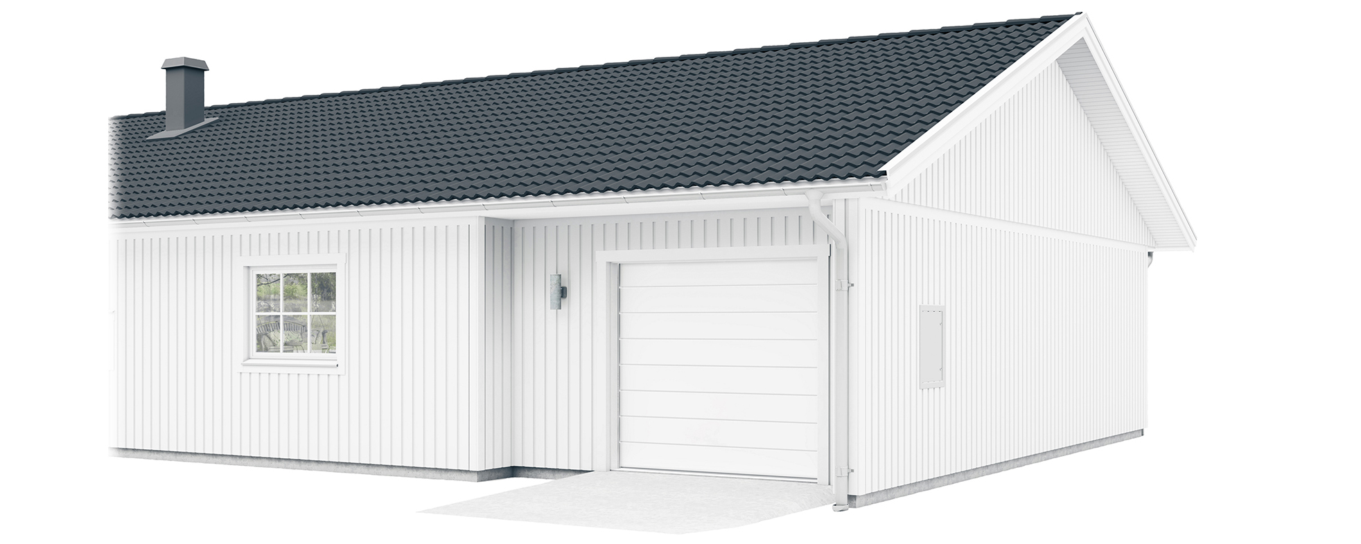 Väljer du att bygga ett LB Optimal 141 erbjuder vi kopplat garage både till Sadel och Pulpet modellen. Här finns plats för en bil och du kan även välja att dela av garage och förråd med en vägg.