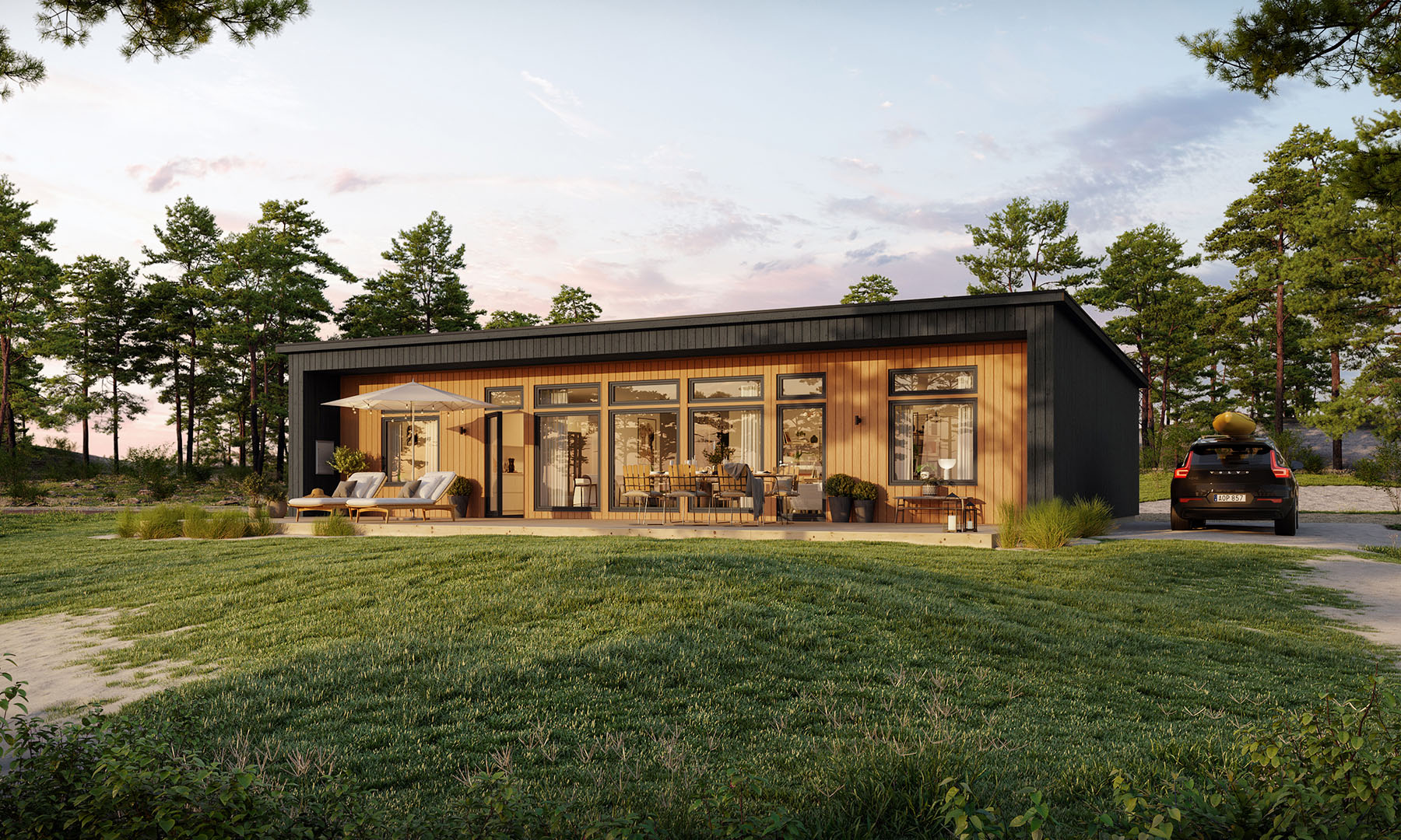 Priset avser standardutförande med vår höga grundstandard på totalentreprenad och inkluderar grundläggning med platta på mark och vattenburen golvvärme samt markarbeten i standardomfattning. Vi förbehåller oss rätten för lokala prisavvikelser med hänsyn till transport- och tillgänglighetssvårigheter, så som vid bl a bro-, tunnel- eller färjeanslutna ögrupper.