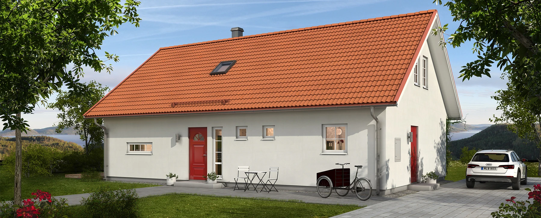 Priset avser standardutförande med vår höga grundstandard på totalentreprenad och inkluderar grundläggning med platta på mark och vattenburen golvvärme samt markarbeten i standardomfattning. Vi förbehåller oss rätten för lokala prisavvikelser med hänsyn till transport- och tillgänglighetssvårigheter, så som vid bl a bro-, tunnel- eller färjeanslutna ögrupper.