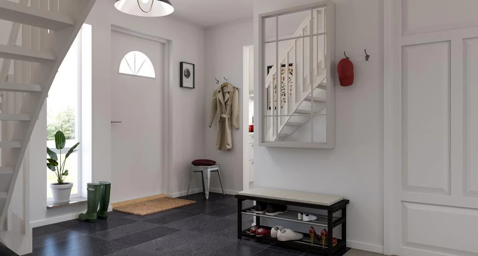Här finns gott om utrymme för det större hushållet, det märks redan i den rymliga entrén som har mycket plats för förvaring. För att slippa få med grus och smuts upp på övervåningen är trappan förskjuten i riktning bort från ytterdörren. Det här är ett hus med luftig känsla som har rundgång från entré till kök och vardagsrum. Övre plan har en optimerad planlösning med generösa rum och skjutdörrsgarderober i det största sovrummet. På nedre plan finns möjlighet till ett extra sovrum eller en rymlig klädkammare och huset har separata utrymmen för wc/dusch och klädvård. Bland tillvalsmöjligheterna märks fönsterdörr till stora sovrummet, rejäl köksö med sittplatser och stora fönsterpartier i vardagsrum och vid matplats.