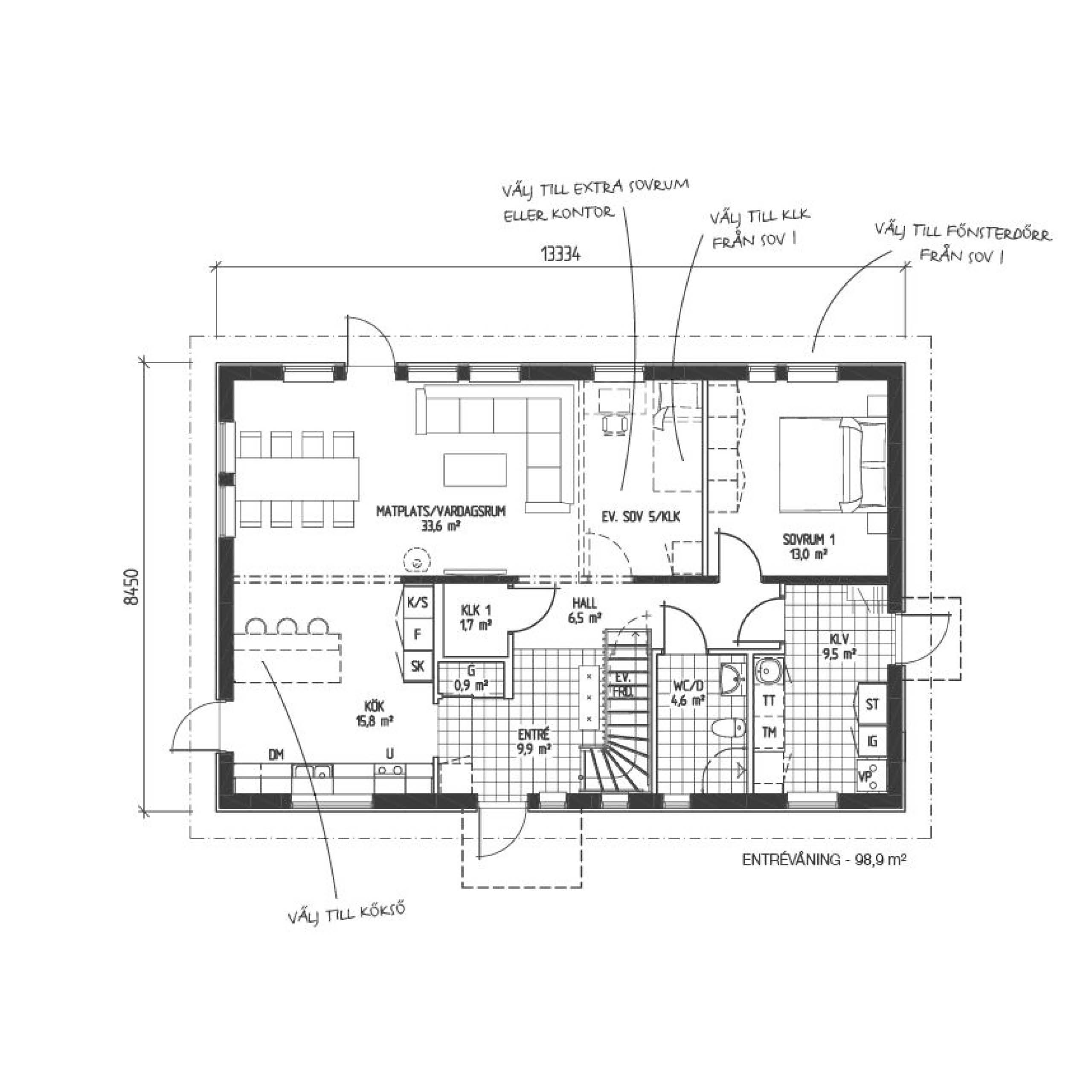 Priset avser standardutförande med vår höga grundstandard på totalentreprenad och inkluderar grundläggning med platta på mark och vattenburen golvvärme samt markarbeten i standardomfattning. Vi förbehåller oss rätten för lokala prisavvikelser med hänsyn till transport- och tillgänglighetssvårigheter, så som vid bl a bro-, tunnel- eller färjeanslutna ögrupper.