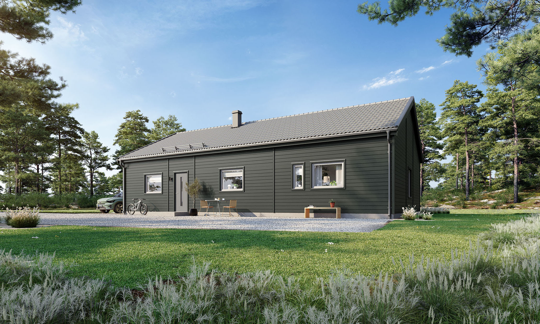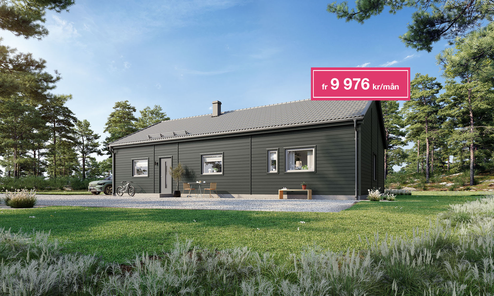Priset avser standardutförande med vår höga grundstandard på totalentreprenad och inkluderar grundläggning med platta på mark och vattenburen golvvärme samt markarbeten i standardomfattning. Vi förbehåller oss rätten för lokala prisavvikelser med hänsyn till transport- och tillgänglighetssvårigheter, så som vid bl a bro-, tunnel- eller färjeanslutna ögrupper.