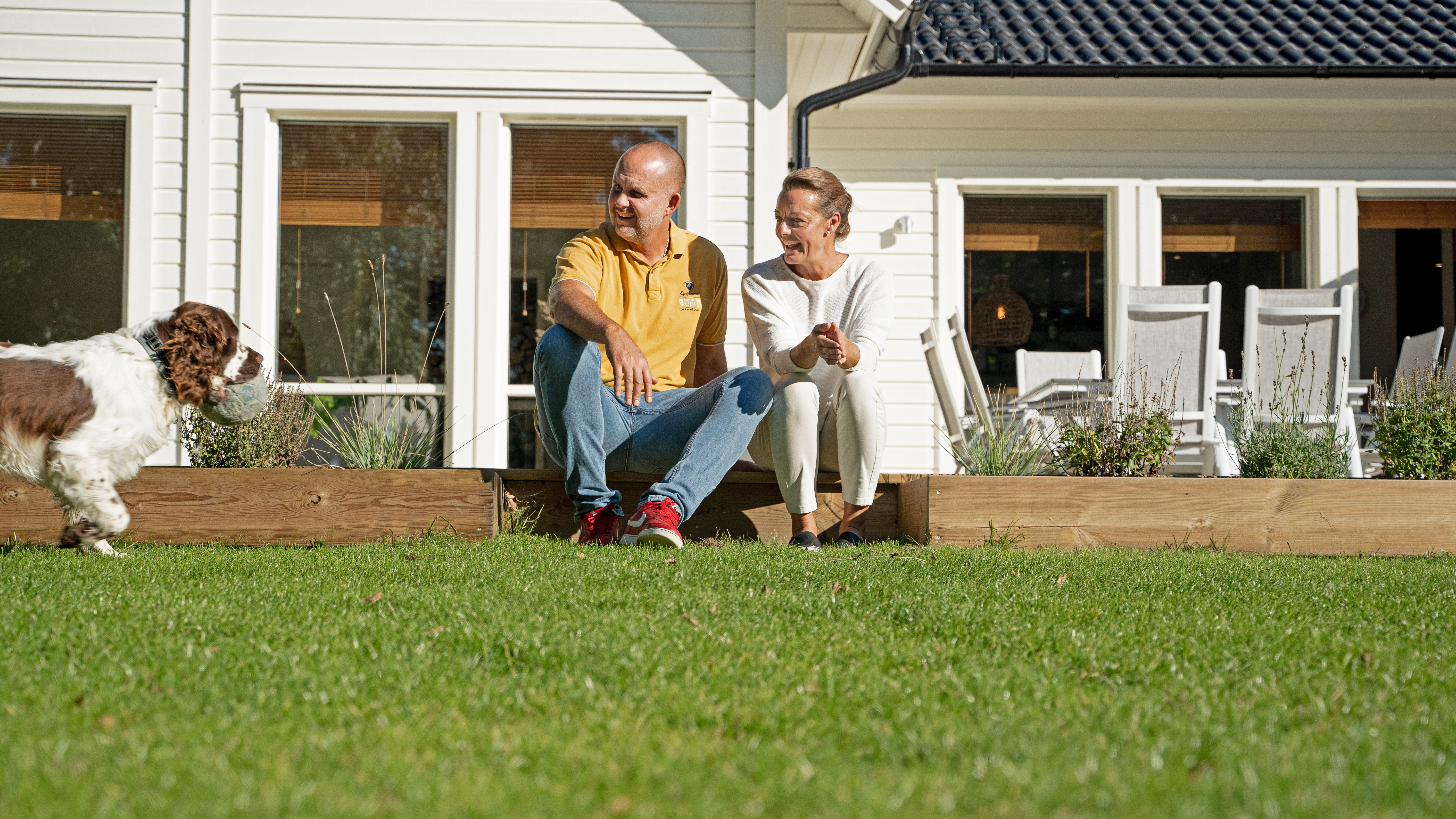 – Vi träffade vår säljare på LB-Hus som också tyckte att husmodellen var perfekt för vår tomt. I september 2021 har vi bott här i ett år, och det känns fortfarande som gjort för oss – och för den här miljön precis vid vattnet. Det kunde inte blivit bättre.