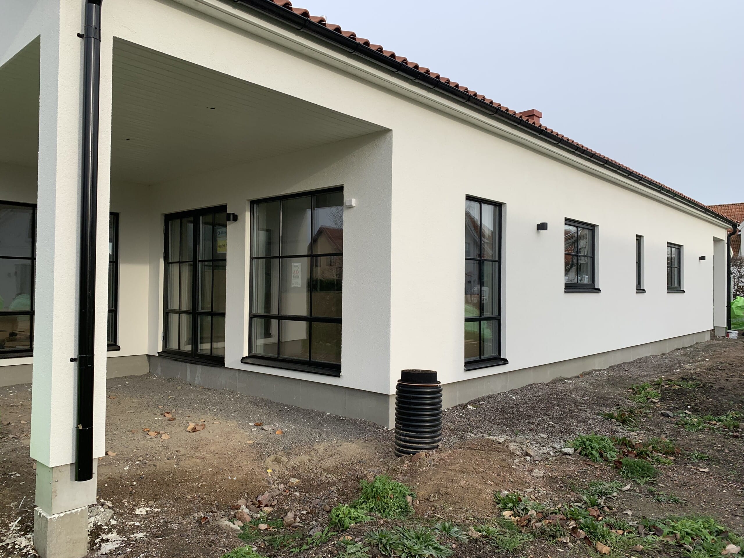 Ett specialritat hus med putsad fasad, fina fönsterparti med industriell spröjs och boyta på ca 140 kvm. Huset har en öppen planlösning med ryggåstak i såväl vardagsrum som kök och mer avskilt finns husets tre sovrum.