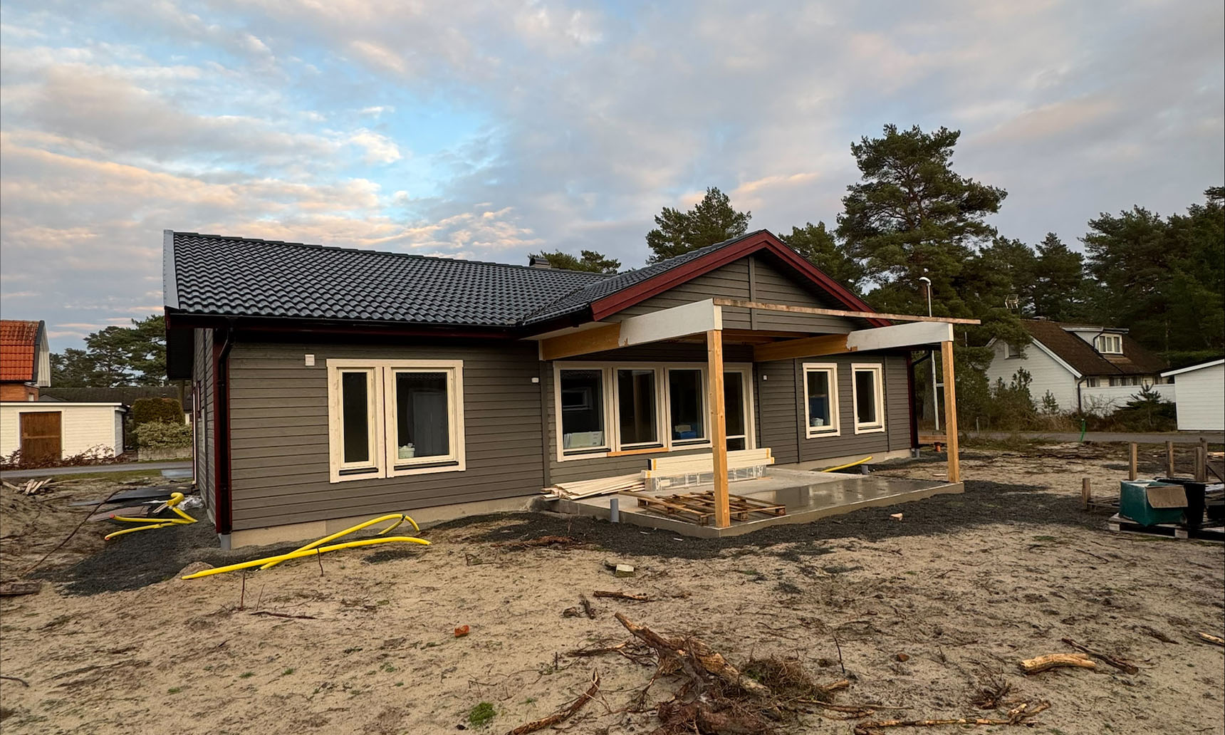 Välkommen till öppen visning av ett LB Optimal 141 med fristående garage med carport lördagen den 17/1 kl 14.15-15.15 på Manne Måns väg 4 i Åhus.