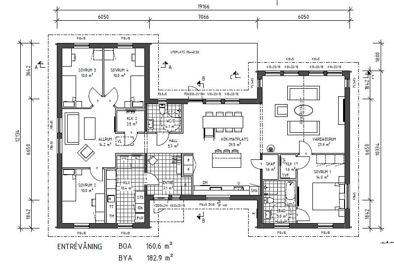 Här med en justerad planlösning där vi genom anpassningar och skafferi i köket.
