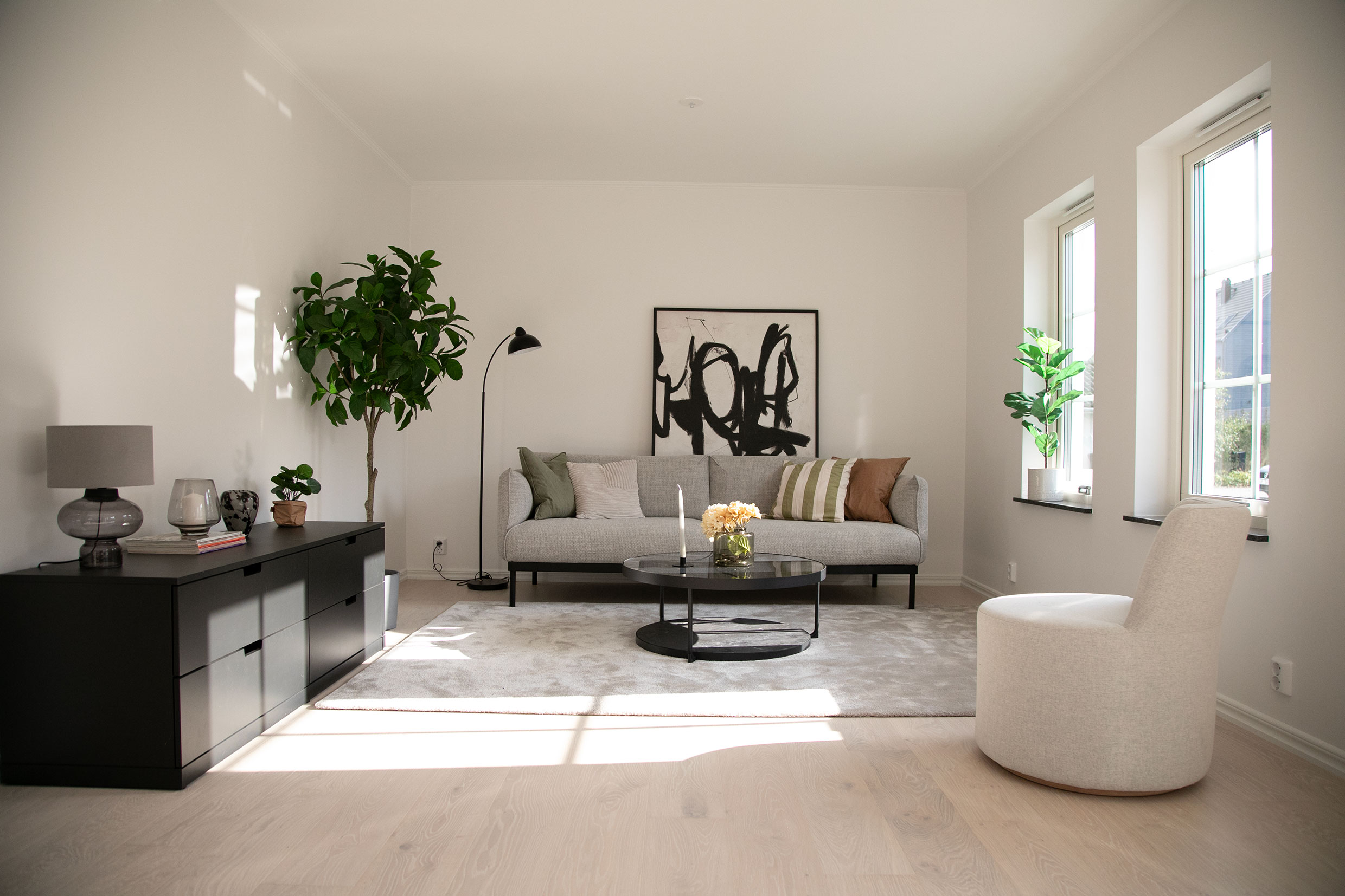 Välkommen in i den generösa hallen. Njut av ett entréplan som genom det öppna köket, matplatsen och vardagsrummet, ”på riktigt” inbjuder till socialt umgänge. Vardagsrummets 40 kvm har också möjligheten att avgränsas, och kan då inkludera ett femte sovrum i huset. Toa med dusch och stor tvättstuga med separat entré finns också på bottenvåningen.